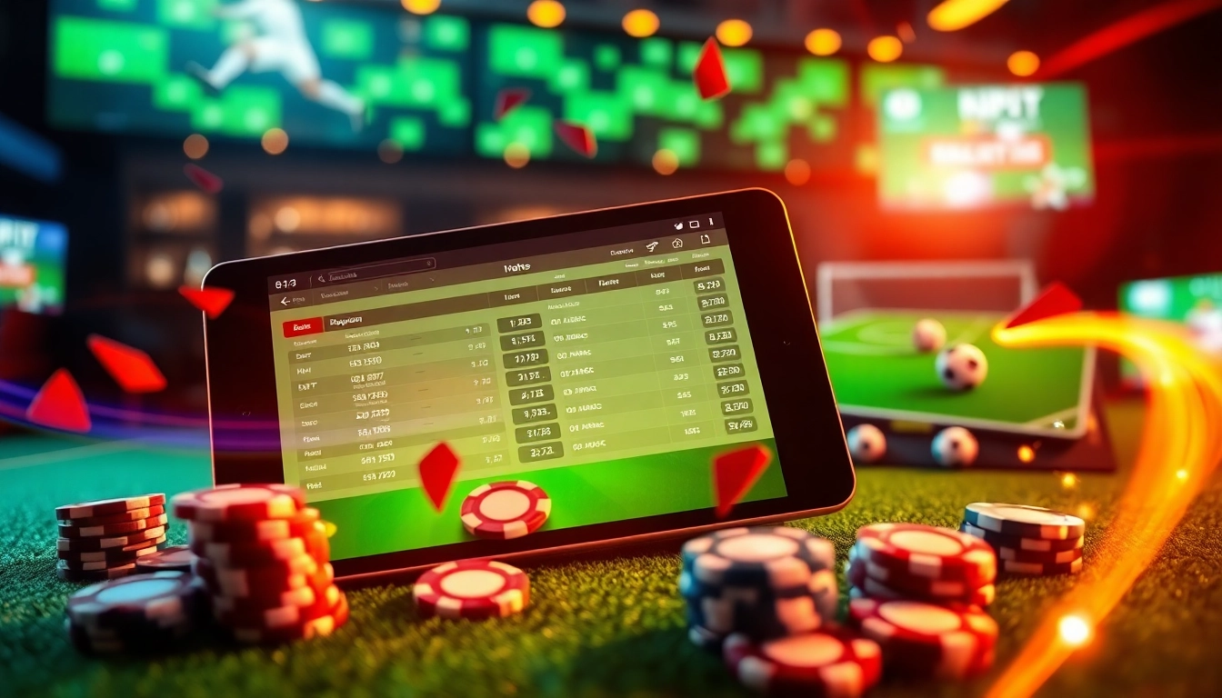 Illustration showcasing how to แทงบอลยังไง with engaging sports betting visuals, smartphones, and vibrant odds.